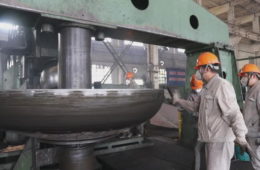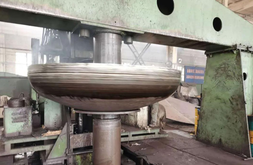 國(guó)內(nèi)企業(yè)在加工大尺寸、厚板材封頭時(shí),通常采用熱壓成型,因受熱不均勻、鋼材組織結(jié)構(gòu)易發(fā)生變化、成品尺寸公差大等因素制約著產(chǎn)品可靠度和生產(chǎn)效率。本次技術(shù)突破,使公司在今后生產(chǎn)中,在保證較高加工精度的前提下大大提高了生產(chǎn)效率。同時(shí),冷旋對(duì)鋼材組織結(jié)構(gòu)影響較小,產(chǎn)品在使用中的耐壓程度及抗破壞性也優(yōu)于傳統(tǒng)加工方法。